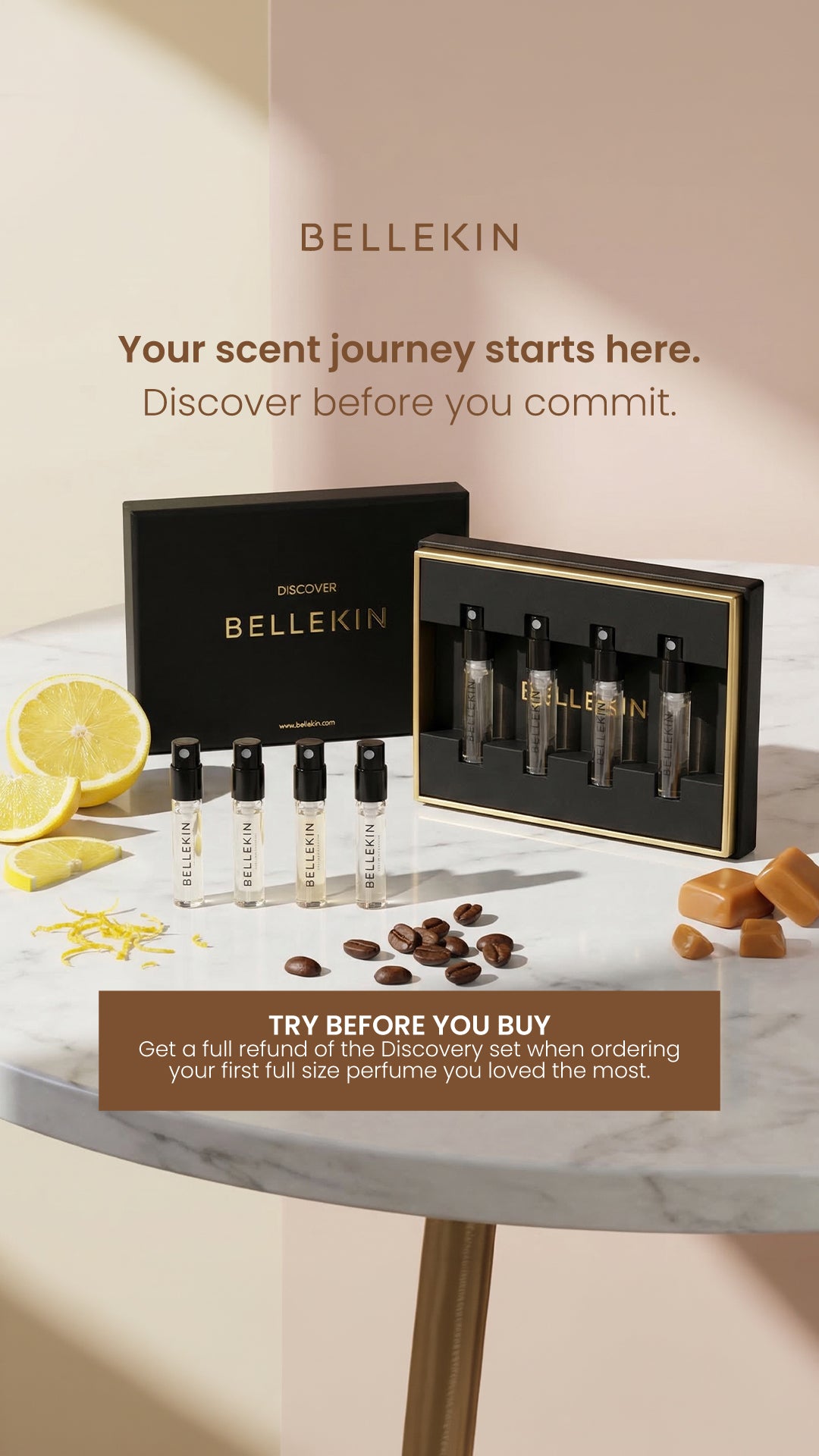 The Discovery Set invites you to experience every Bellekin fragrance before committing to a full bottle. Discover how each Bellekin scent evolves on your skin and find the one that becomes your signature. The Discovery Set comes with samples of all 8 fragrances available.